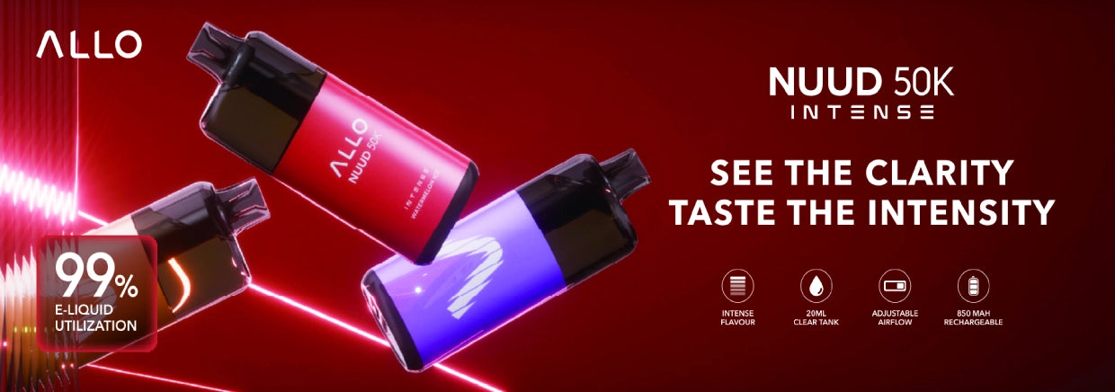 Engineered for clarity, efficiency, and exceptional flavour, the Allo NUUD 50K is the perfect choice for customers seeking a premium, modern disposable experience. Stock your shelves with the INTENSE Series and elevate your vape lineup today.